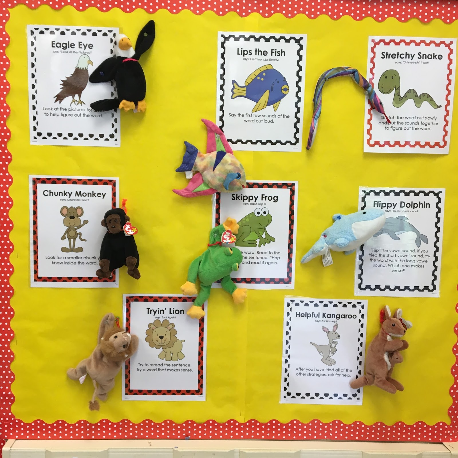 We can't forget our Beanie Baby Strategies...right beside the Guided Reading Table...convenient and ready to be pulled down and used when needed to reinforce or teach a reading strategy!